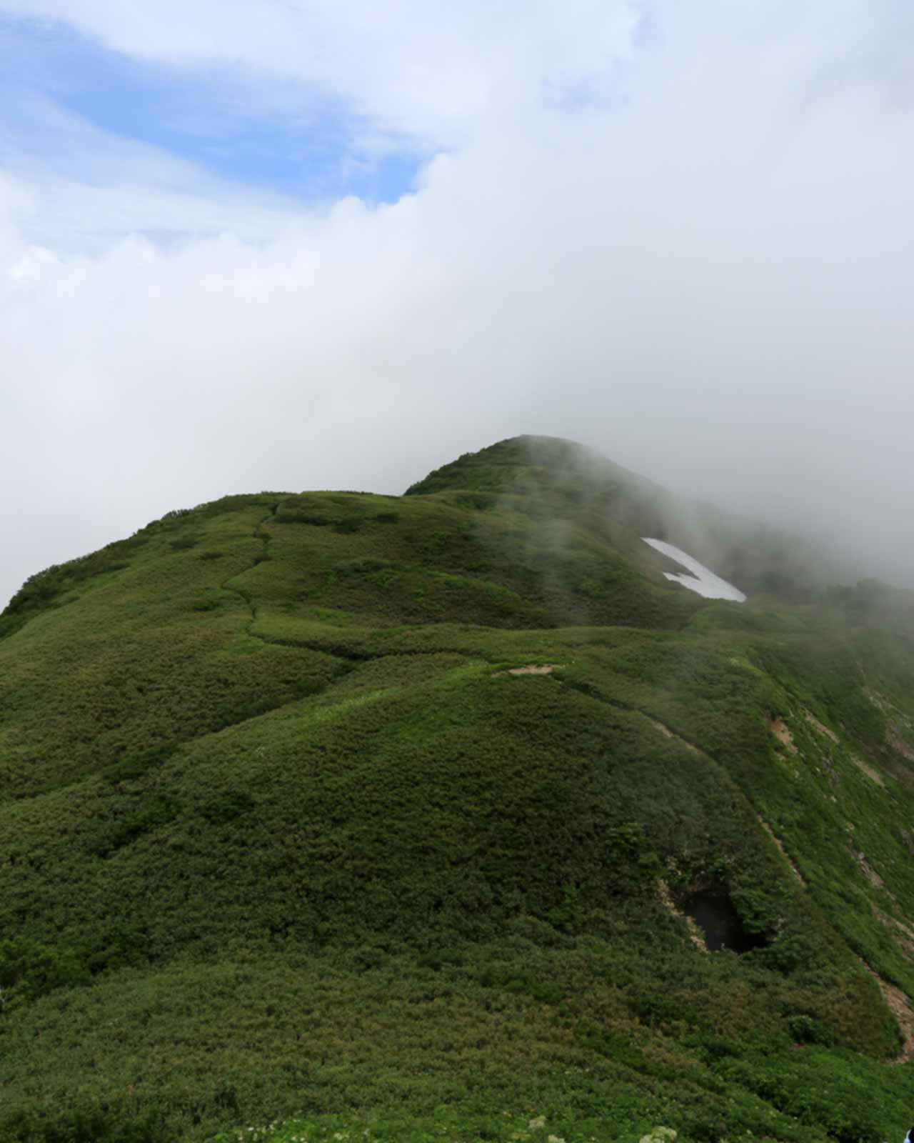 日本海側から見上げれば高くそびえる壁、内陸側から見れば奥深く静かな山。