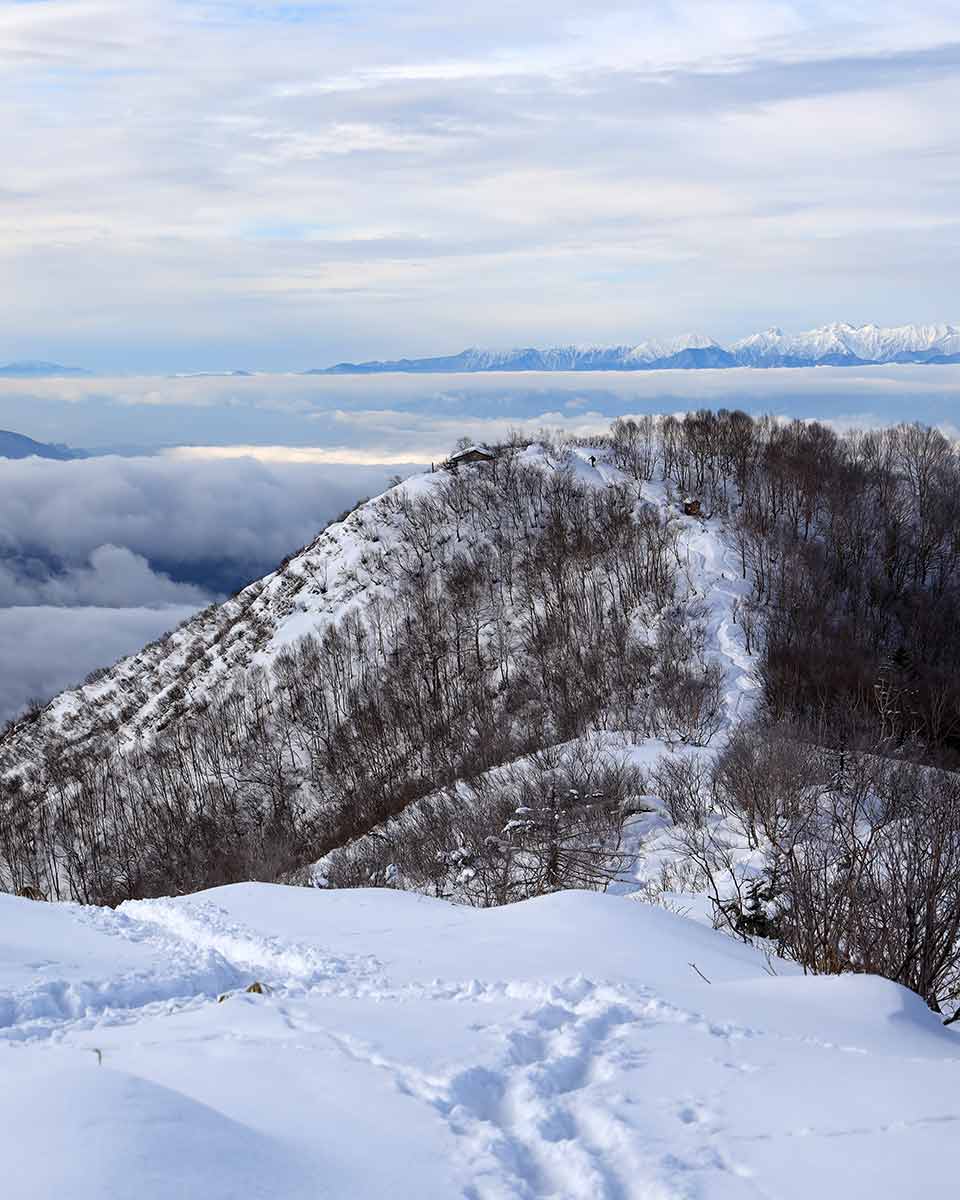 眺望がよく、北アルプスを一望するような景色は、雪をたっぷりと付けた季節が映えます。