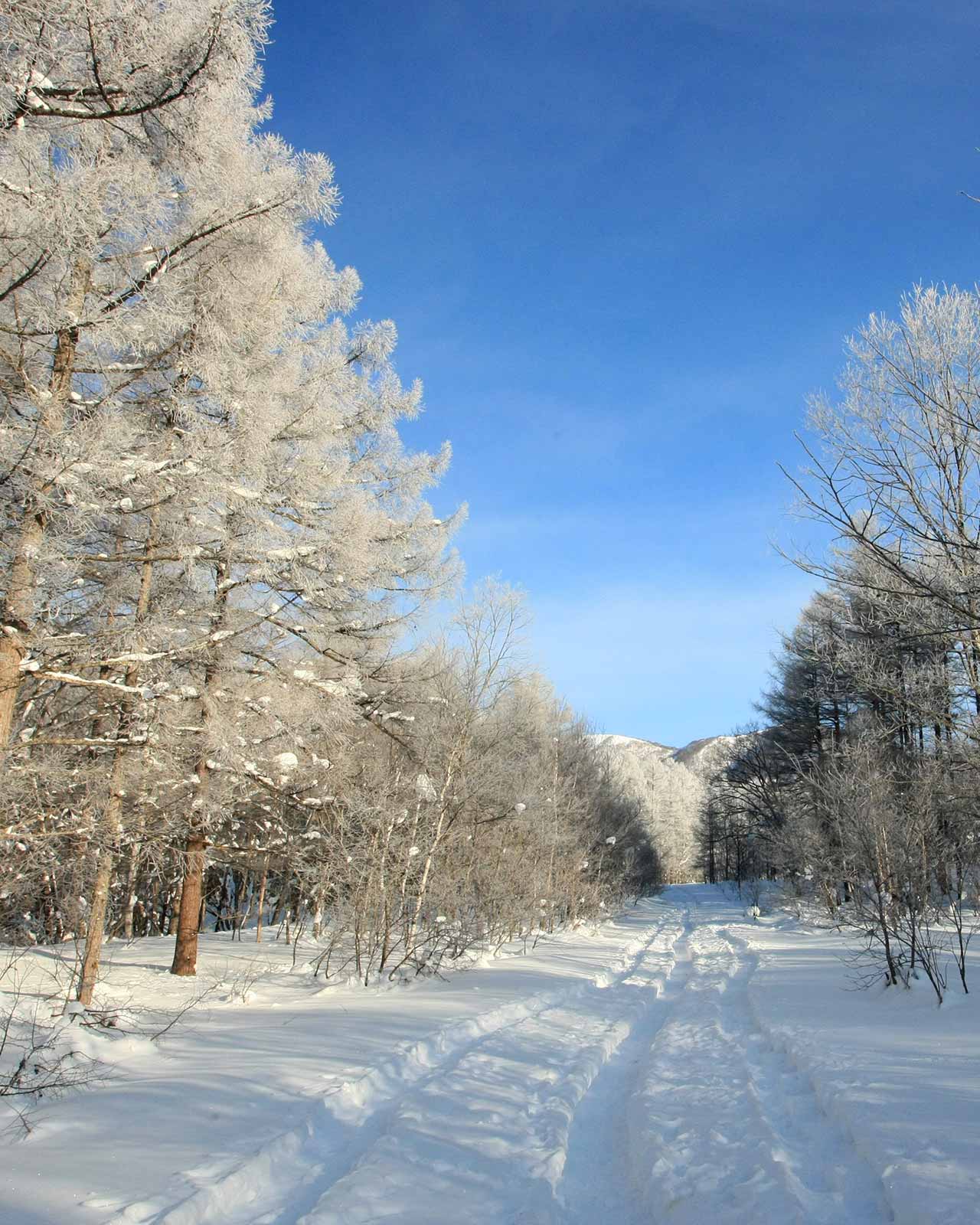 登山口の大橋周辺では霧が発生しやすく、特に1月の気温が低い晴天の日は霧氷が見られます。