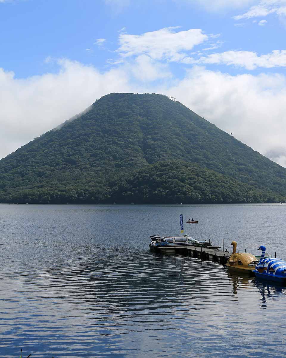 榛名山の峰々が並ぶ榛名湖は、観光地だけあって土産物屋や飲食ができる店舗、温泉や宿泊施設まで充実しています。