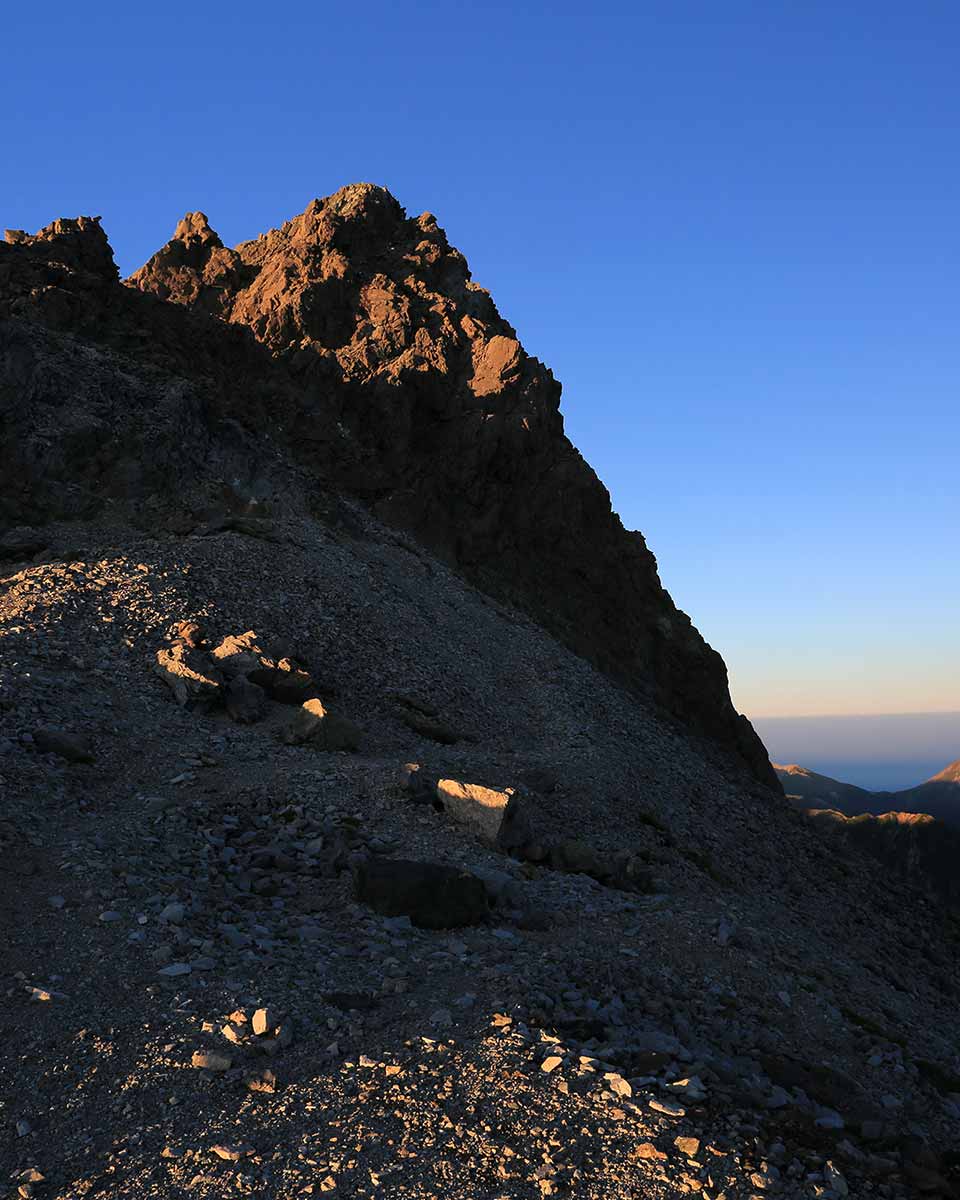 北アルプス南部に位置する標高3,180mの尖塔系の山。