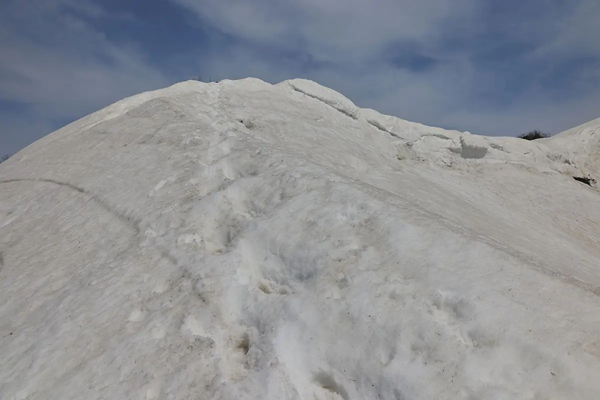 雪庇が溶け崩れたところに、高さ2・3mほどの壁が残ったようだった。