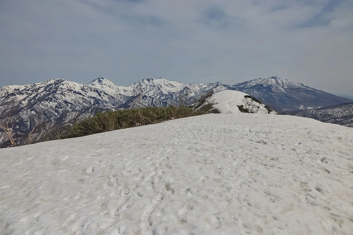 笹や木が雪の下にある時季は、中西山からの眺望も迫力がありそう。