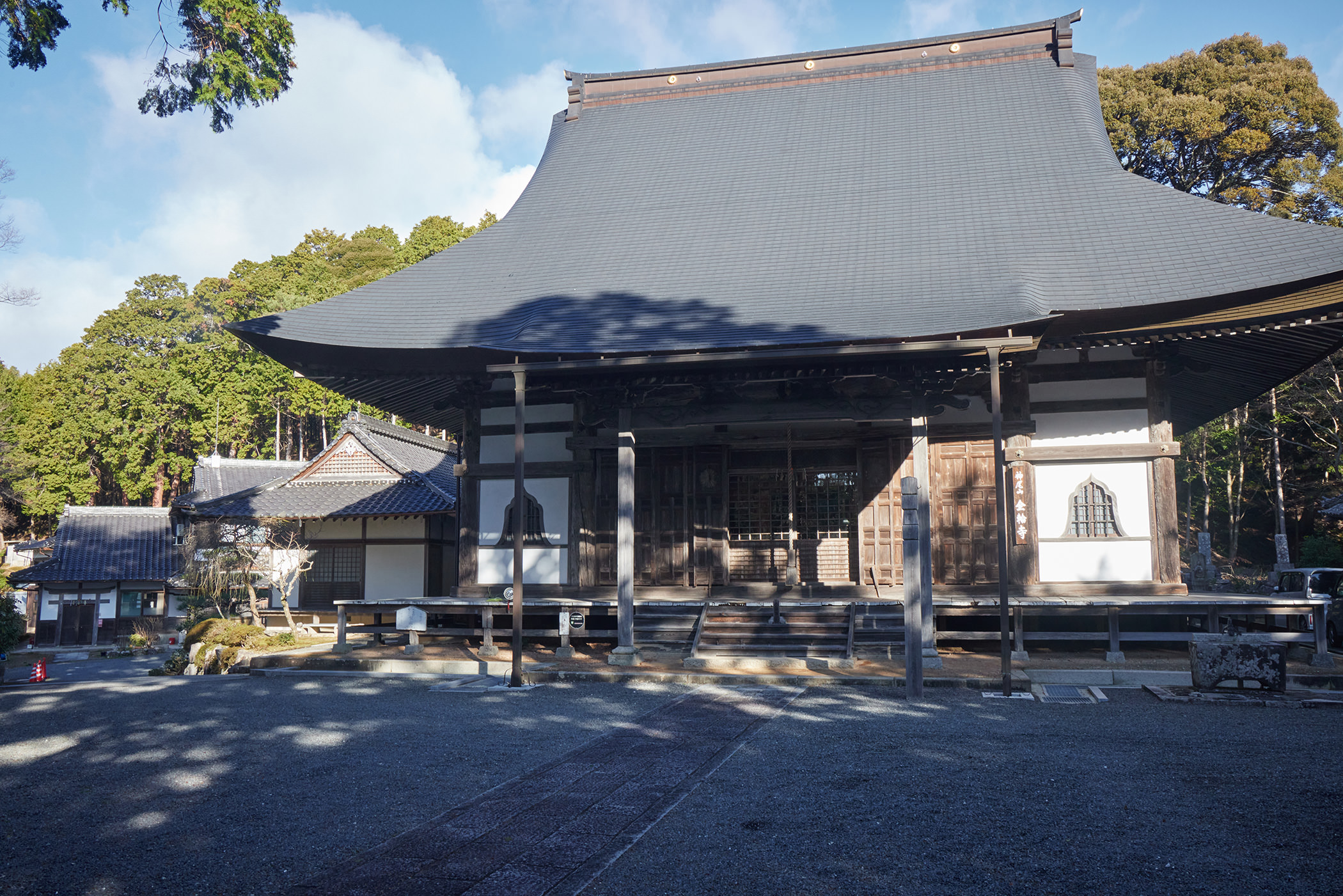 本堂の前を通り、境内を通過して半国山へ向かう。